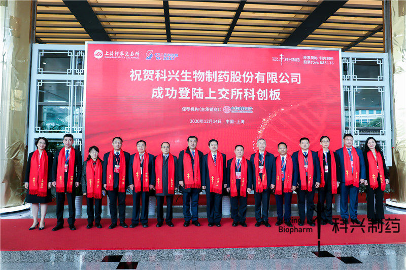 On the morning of December 14, 2020, Kexing Biopharm (stock code: 688136) was officially listed on the Sci-Tech Innovation Board. The listing ceremony was held in the Shanghai Stock Exchange, and attended by the following: Bian Xiangwei, Deputy Secretary and Director of Zhangqiu District Committee of Jinan City; Huang Bo, Deputy Secretary of Party Working Committee and Director of Management Committee of Mingshui Economic and Technological Development Zone; representatives of intermediary agencies, clients, suppliers, shareholders and employee representatives.