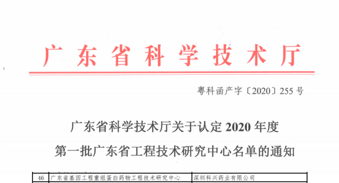 近日,經過廣東省科學技術廳組織的一系列的專家評審和網上公示,科興制藥旗下全資子公司——深圳科興藥業有限公司正式被認定為“廣東省基因工程重組蛋白藥物工程技術研究中心”。