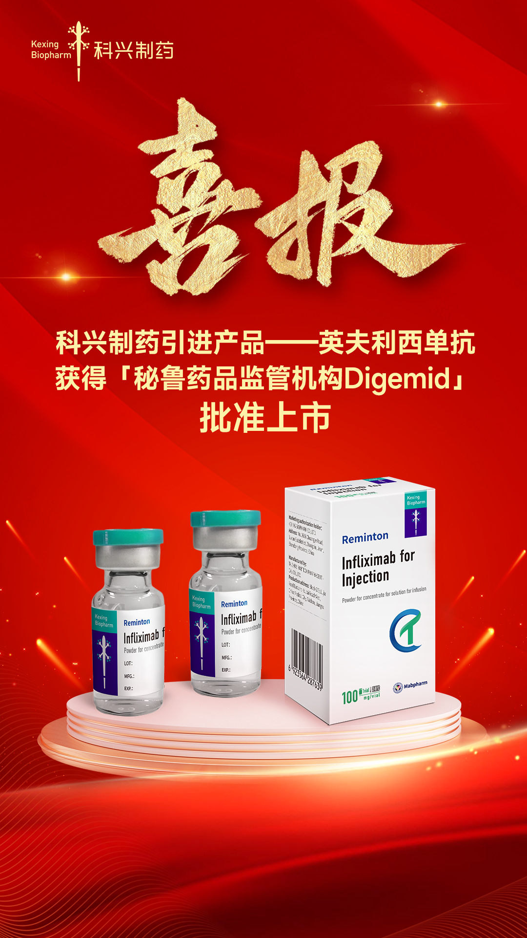 近日,科興制藥(688136.SH)從邁博藥業(yè)引進的產(chǎn)品——注射用英夫利西單抗再傳出海新進展,該產(chǎn)品已正式獲得秘魯藥品監(jiān)管機構(gòu)Digemid批準上市!